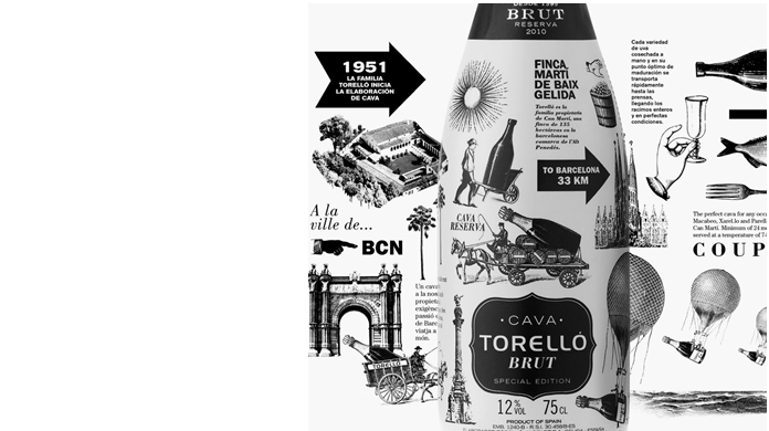 Het Huis Torelló - Can Martí is gelegen in Penedes in Noord Spanje en is al sinds de 16de eeuw in de familie. Het landgoed ligt halverwege tussen de zee en de bergen van Montserrat op 33 km afstand van Barcelona. Op de kalkrijke kleibodem verbouwen zij de typische cava druiven Macabeo, Xarel.lo en Parellada, maar ook Chardonnay and de zeldzame Subirat Parent. Daarnaast staan er de blauwe druiven Cabernet Sauvignon, Merlot, Pinot Noir and Syrah. Naast Cava maakt Torello ook een aantal mooie stille wijnen, zowel wit als rood. Maar Cava is toch de specialiteit. Aan 'basiscava' doet Torello niet. Ze maken uitsluitend cava in de kwaliteiten reserve en gran reserva. Het wettelijke minimum rijping voor cava reserve is 15 maanden, maar bij Torello krijgt de reserve cava een minimum van 24 maanden lie-rijping.